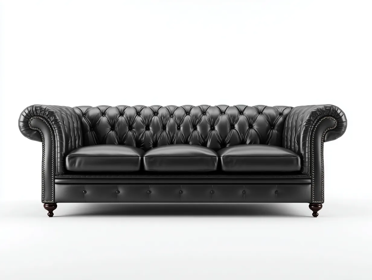 Divani a 3 posti - pelle sintetica - 225x95x82 cm - Nero - stile classico