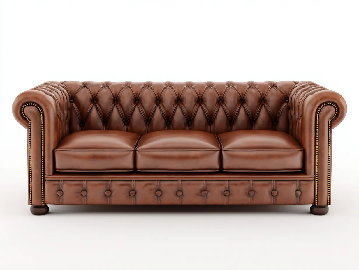 Divani a 3 posti - pelle sintetica - 228x97x84 cm - Marrone - stile classico