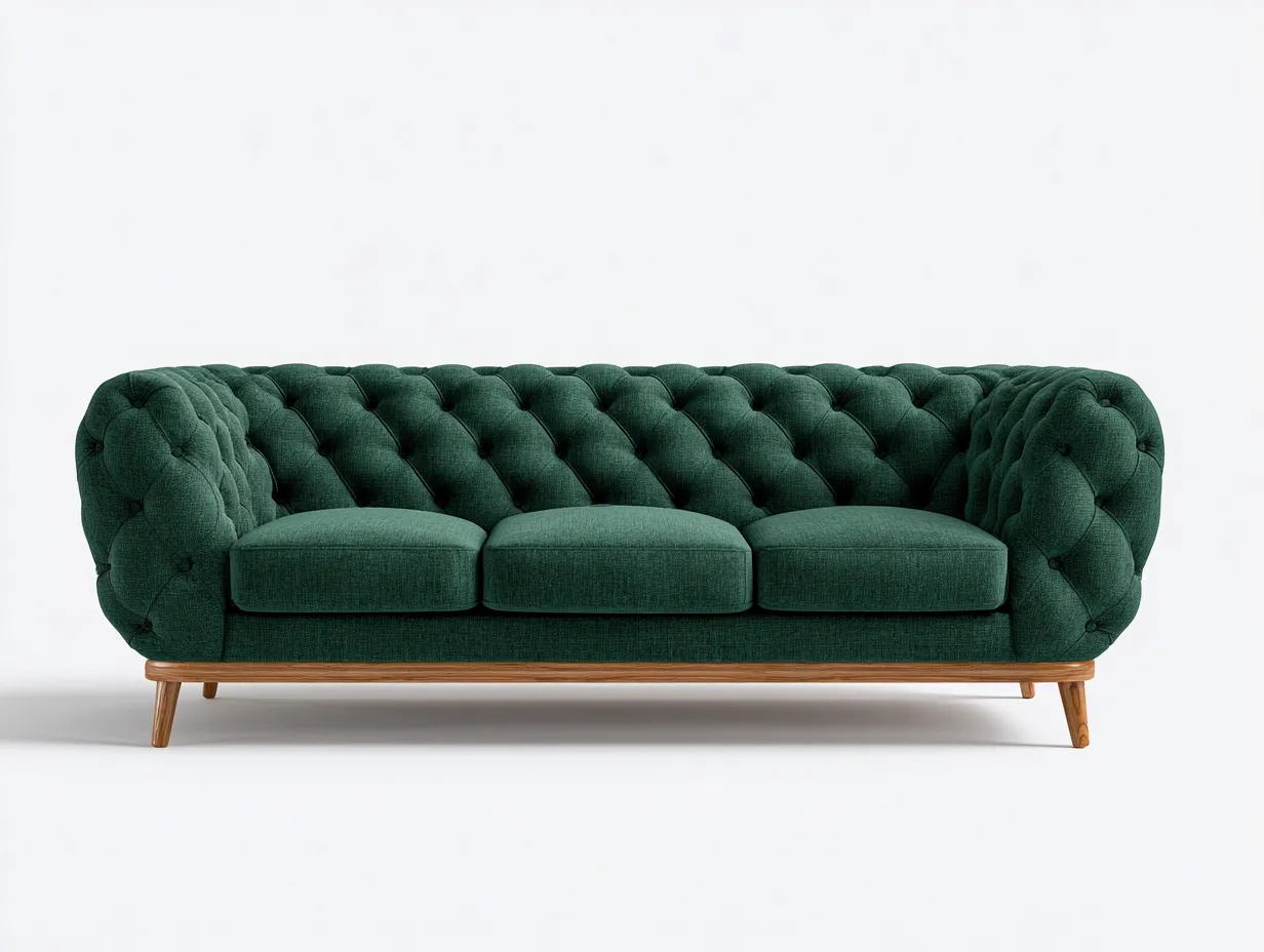 Divani a 3 posti - tessuto-legno - 224x93x86 cm - Verde - stile classico