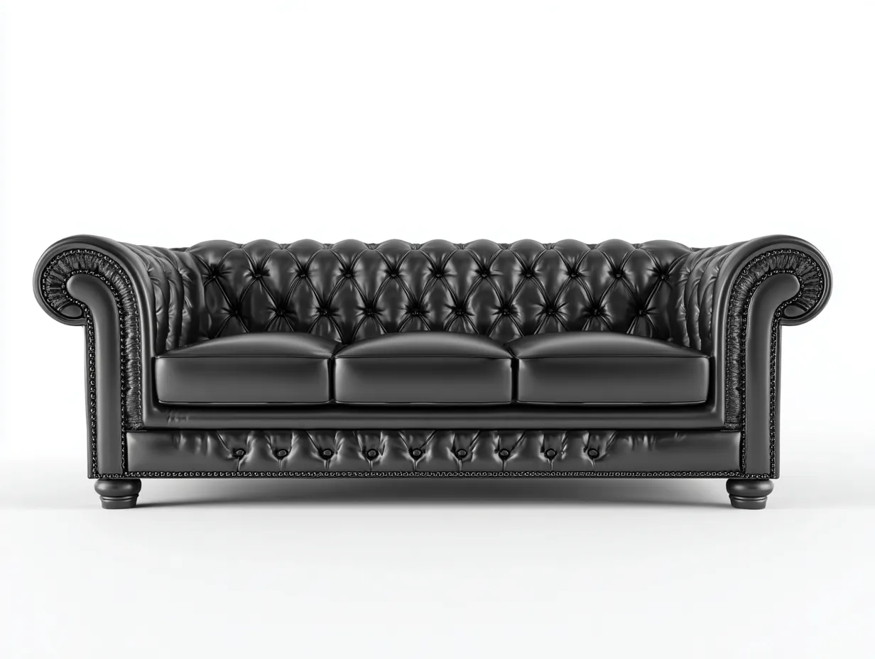 Divani a 3 posti - pelle sintetica - 225x95x82 cm - Nero - stile classico